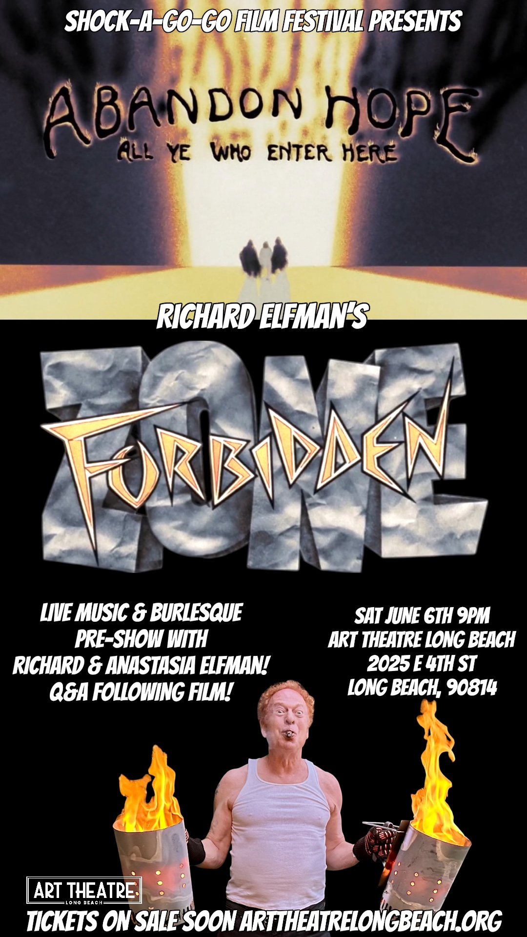 Come early for wild pre-show featuring Richard Elfman beating his bongos and Anastasia Elfman’s sizzling burlesque. Stay late for a special Q&A and autographs with Forbidden Zone creator Richard Elfman!